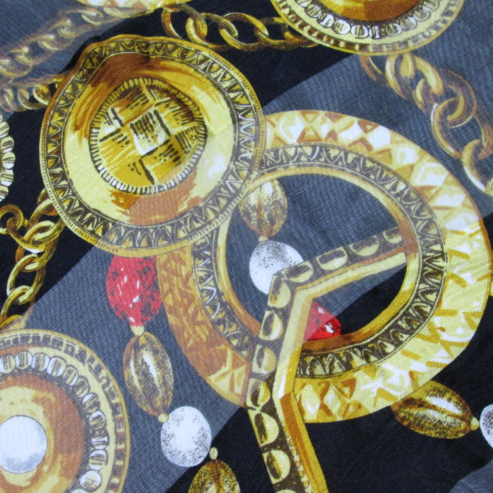 Comment | イヴ・サンローランのヴィンテージシルクスカーフ。黒地にゴールドのコインとチェーンモチーフが配された、バブル期らしい華やかなデザイン。シアーボーダーが軽やかさと抜け感を添え、首元だけでなくバッグやヘアアレンジにも映える一枚です。【スタッフの一言】「ゴージャスなコインチェーン柄と透け感のあるボーダーの組み合わせが、バブル期の空気感をそのまま纏わせてくれます。」 【買い取りご案内】Yves Saint Laurentをはじめ、フランスブランドのヴィンテージスカーフやアクセサリーの買い取りを強化しています。お気軽にご相談ください。 |