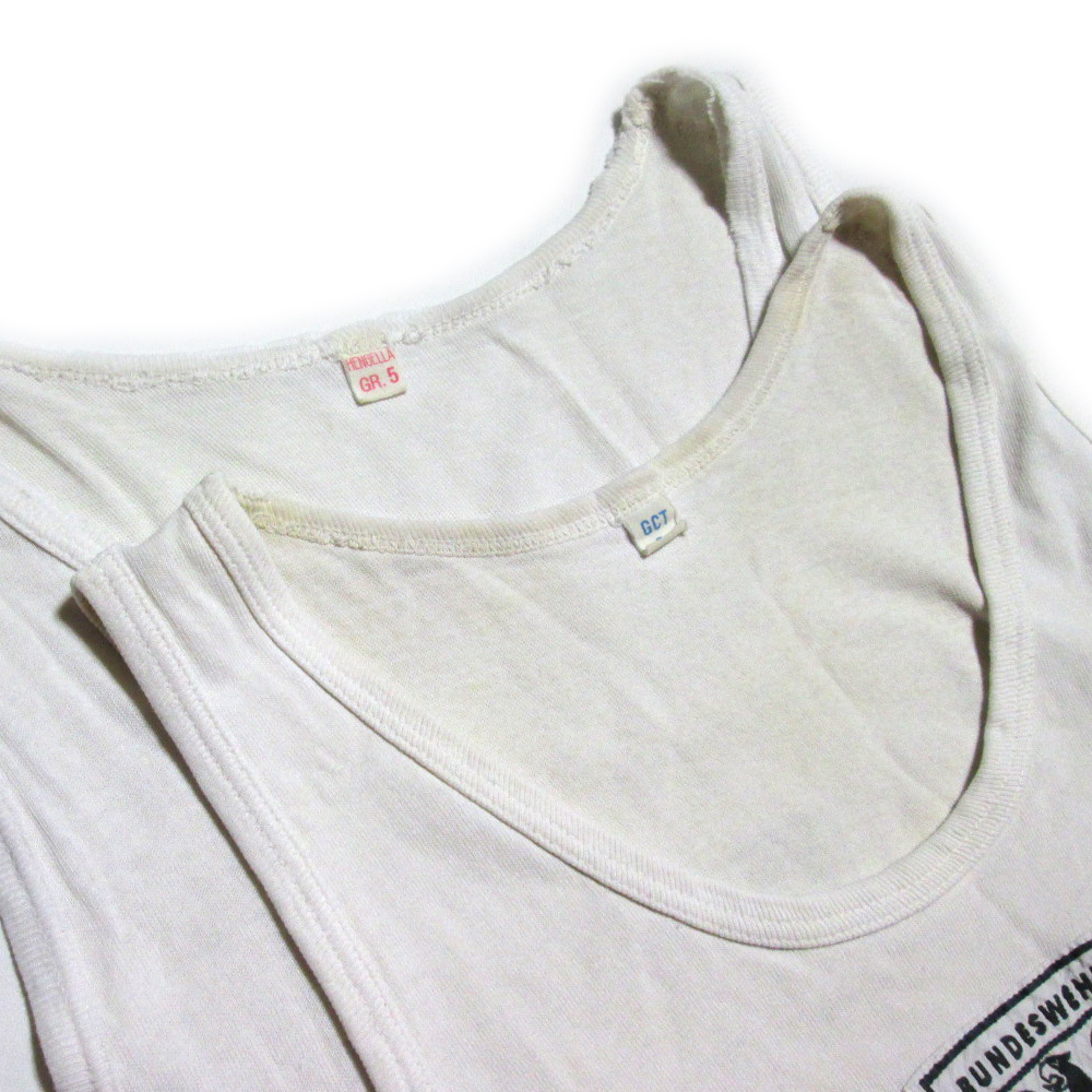 Comment | ドイツ軍(BUNDESWEHR)実物タンクトップ、鷲のエンブレムプリント入り。シンプルながらミリタリーファンに人気の高いデザインで、2枚セットでの出品です。トレーニングやレイヤードに活躍する希少なヴィンテージアイテム。【スタッフの一言】2枚セットはなかなか出ません。無骨さの中にある軍モノ特有の存在感がたまりません。 【買い取りご案内】当店では各国ミリタリーウェアの買い取りも行っております。お気軽にお問い合わせください。 |
