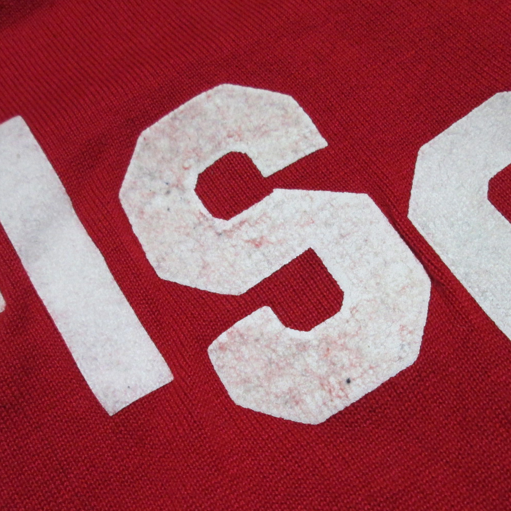 Comment | 1970年代ヴィンテージ、COANL PHILA PA製 のフットボールゲームシャツ。フロントに「WISCONSIN 21」、バックに「SIEVE 21 BIG RED」のプリントが入り、ウィスコンシン大学(愛称:BIG RED)のチームユニフォームとして着用された希少な一着です。ボディにホワイトレタリングが映え、スポーツユニフォームならではの存在感。ヴィンテージスポーツ、カレッジ物、ミリタリーと並ぶ人気ジャンルのコレクタブルアイテムです。【スタッフの一言】「COANLタグ付きの当時物。大学フットボールカルチャーを象徴するようなヴィンテージで、古着好きにはたまらない逸品です。」 【買い取りご案内】当店では 70年代アメリカ製スポーツユニフォーム、カレッジフットボールシャツ、COANL製ヴィンテージアイテム を高価買取しています。 |