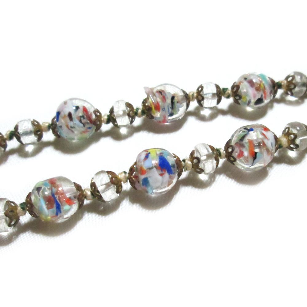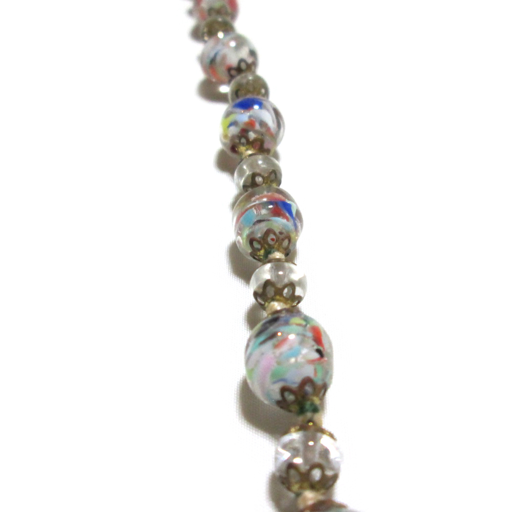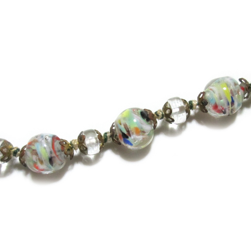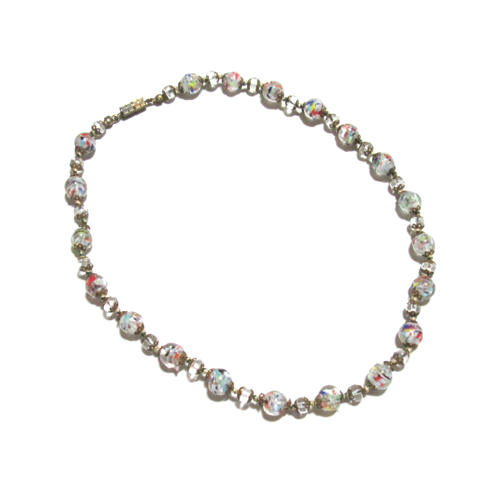 Comment | 80〜90年代ヴィンテージ、イタリア・ベネチア買い付けのベネチアンガラスネックレス。透明感あふれるクリア系のガラスが連なり、光を受ける角度によってきらめきを変える上品なデザインです。カラフルなベネチアンガラスとはまた違う、洗練された雰囲気があり、フォーマルからカジュアルまで幅広いスタイルに合わせられます。シンプルでありながら存在感のある、80〜90年代ならではのヴィンテージジュエリーです。【スタッフの一言】「クリアガラスの澄んだ輝きが涼しげで、首元をさりげなく引き立てます。ベネチア買い付けならではの特別感ある一品です。」 【買い取りご案内】当店では ベネチアンガラスをはじめ、イタリア製ヴィンテージアクセサリー、80〜90年代ジュエリー を高価買取しています。 |