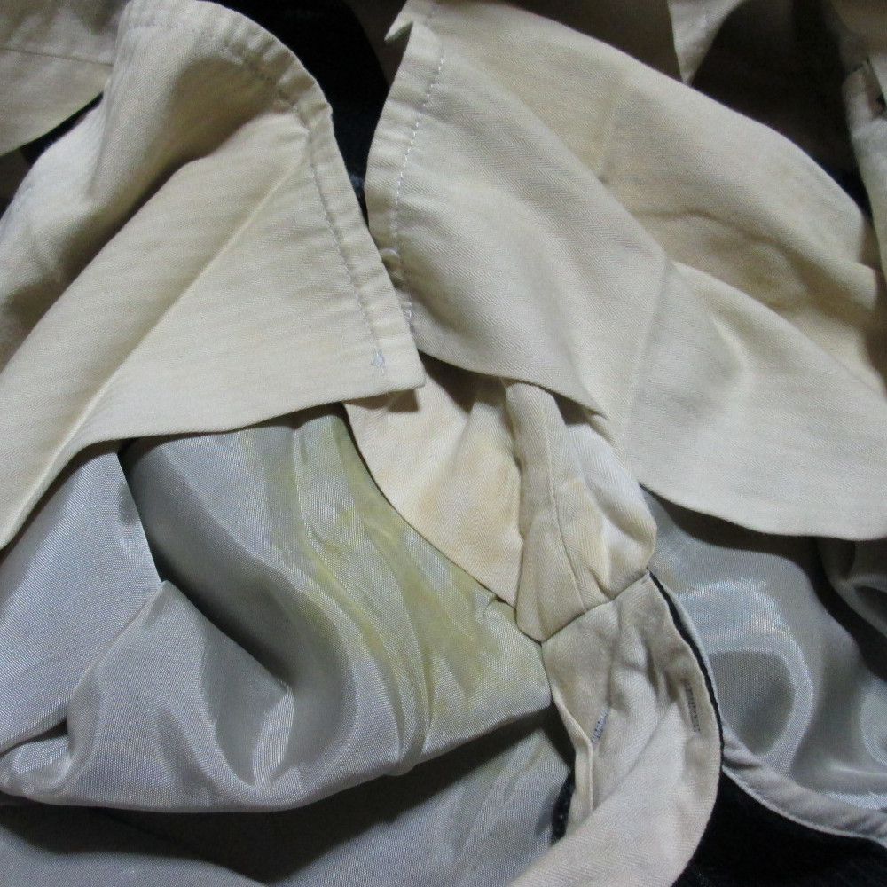 | Condition | こちらのスーツは、使用感や擦れが見られるものの、まだ十分にご着用いただける状態です。首まわりやその他の部分に若干の汚れ、袖口に擦れキズがございますが、全体的には良好なコンディションです。パンツの裏地にシミがございますが、外観には影響ありません。お手頃価格でお求めいただける一品ですので、リサイクルやお得におしゃれを楽しみたい方におすすめです。 | ||