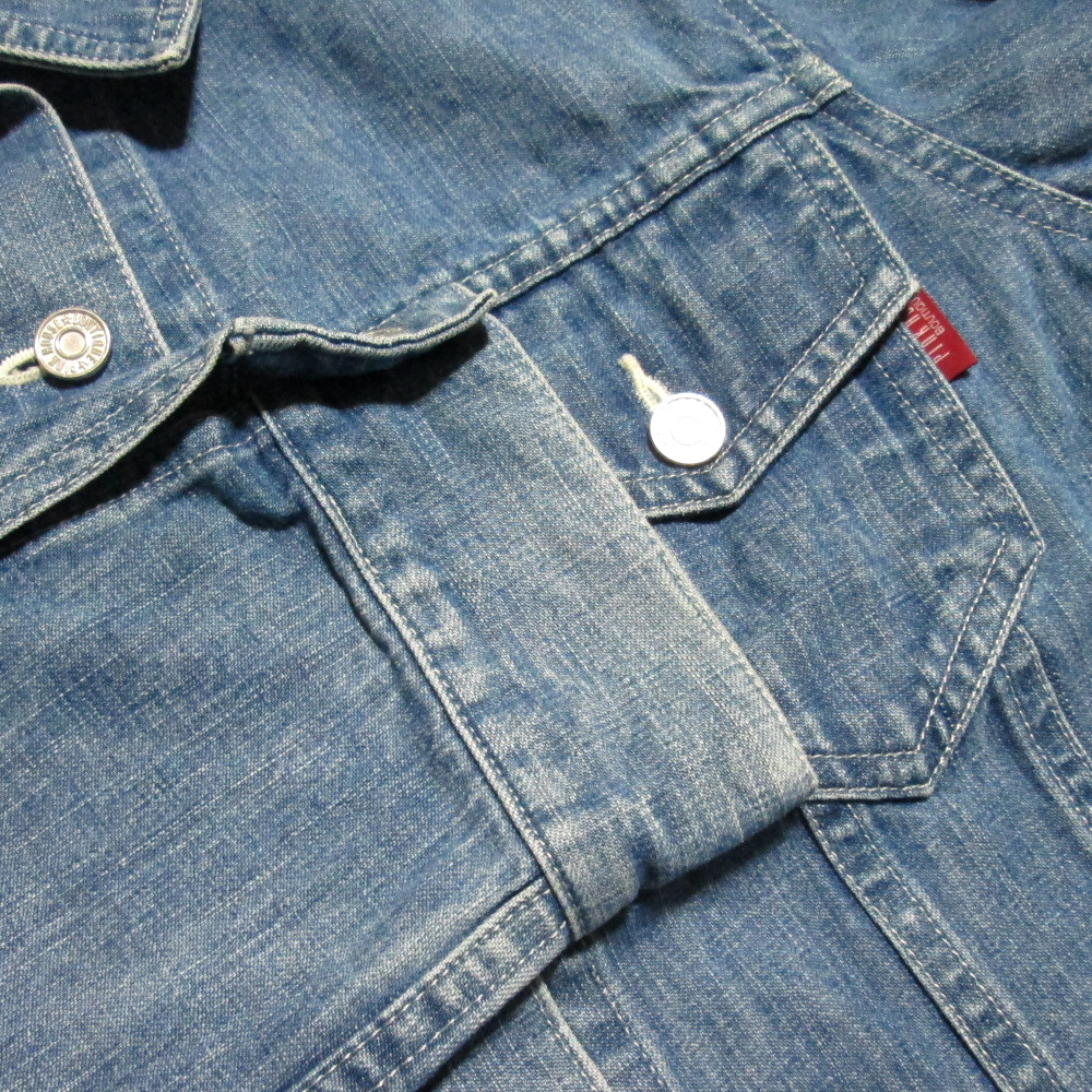 | Condition | こちらのジャケットは、長くご愛用いただいたことによる味わい深い風合いが魅力です。襟や袖口に使用感や色落ちが見られますが、これも経年による味わいの一つとしてお楽しみください。また、上部にわずかな色褪せがございますが、全体的におしゃれなヴィンテージ感を演出しています。カジュアルなスタイルにぴったりの一着です。 | ||
