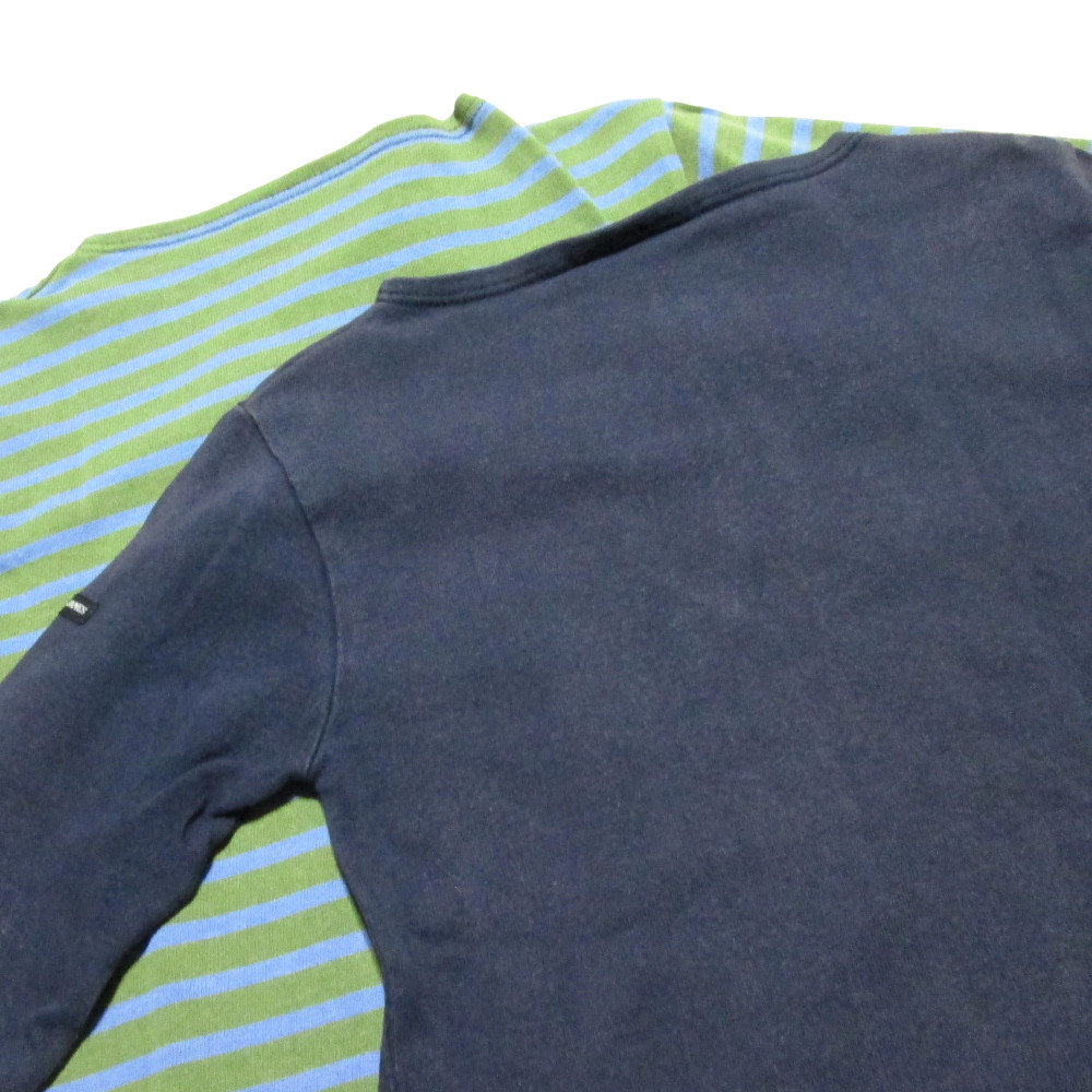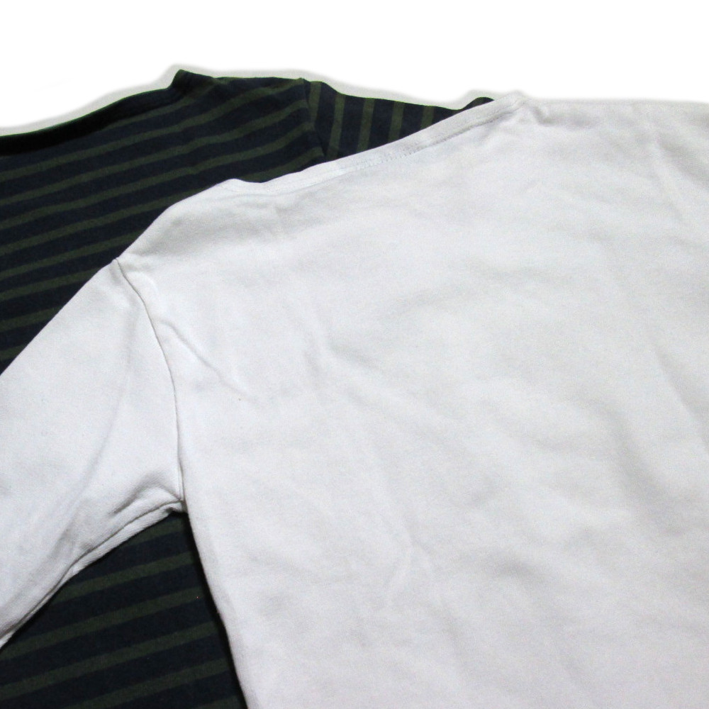 | Comment | フランスの老舗ブランド「SAINT JAMES(セントジェームス)」より、ブランド定番のコットン長袖Tシャツ(バスクシャツ)4枚セット。ボーダー柄2枚と単色2枚のバランスの取れた組み合わせで、季節を問わずデイリーに活躍します。ほどよい厚みのあるコットン素材は、洗うほどに柔らかく肌に馴染む逸品。首元の詰まり具合や袖丈のバランスも絶妙で、シンプルながらフレンチカジュアルの王道を感じる一枚です。【スタッフの一言】セントジェームスの魅力は「毎日着られる上質さ」。バスクシャツらしい厚手コットンで、洗いざらしでも形がきれい。4枚セットは本当にお得で、旅先やデイリー用にぴったりです。 【買い取りご案内】SAINT JAMESをはじめ、A.P.C..ORCIVAL.ARMOR LUXなど フレンチカジュアルブランドの買取も承っております。お気軽にご相談ください。 |