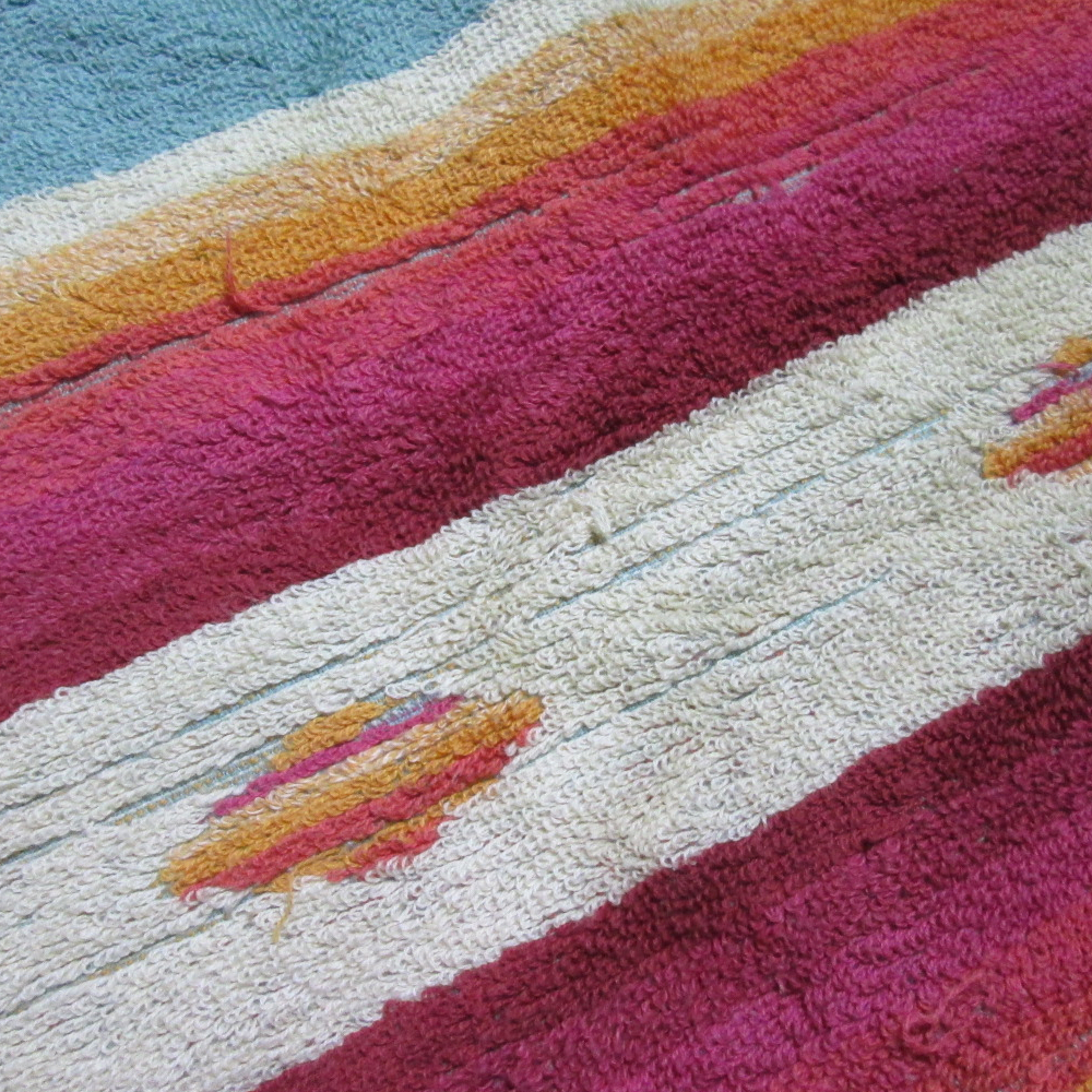 | Condition | こちらのラグは、全体的に使用感があり、汚れやキズ・ほつれが見られます。タグ部分が切れています。ヴィンテージや味わいを楽しむインテリアとして、個性的な雰囲気をお楽しみください。 | ||