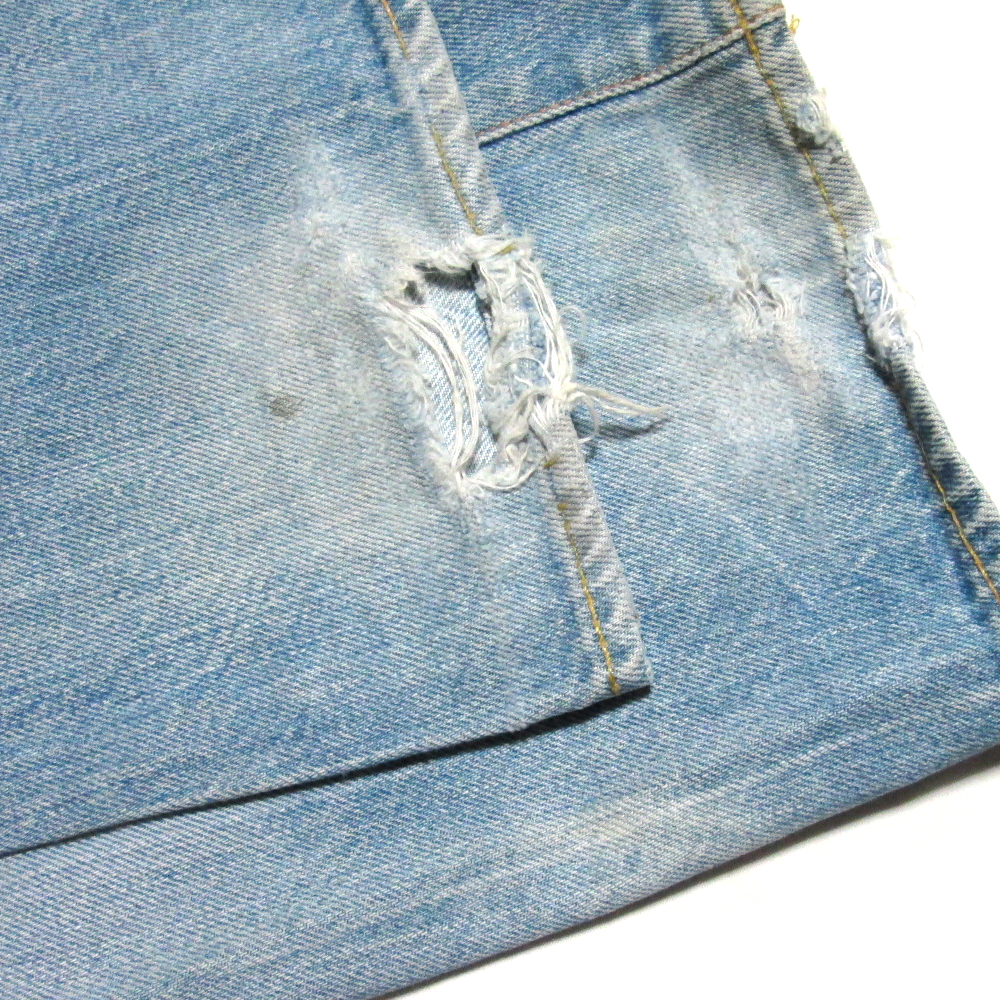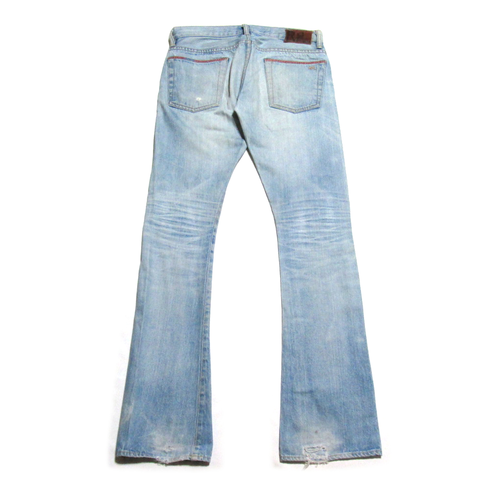 | Condition | こちらのデニムパンツは、ヴィンテージ風の風合いと味わい深い風格が魅力です。使用に伴う擦れや色落ち、腿や裾部分に若干のシミが見られますが、これらは長く愛用いただくほどに味わいが増す、デニムの魅力の一つです。個性的な風合いをお楽しみいただける一着です。 | ||
