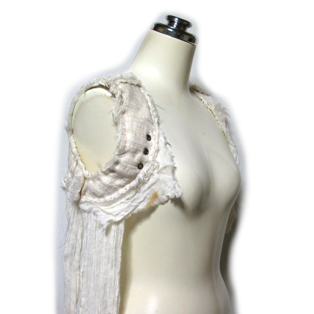 | Comment | 時間が止まったような、静かな退廃。alice auaa らしい世界観が色濃く宿る、ガーゼ素材のゴシックショルダーコルセットカットソーです。透け感のあるガーゼ生地が、肌と空気の境界を曖昧にし、どこか儚く、壊れそうな美しさを纏わせます。ショルダー部分に配されたコルセットディテールが、身体のラインを静かに拘束し、装う人の存在そのものを作品の一部に変えていくような佇まい。 クリームカラーが持つ柔らかさと、ゴシックな構造美とのコントラストが印象的で、甘さでも強さでもない、“退廃という感情”をそのまま形にした一着です。 【スタッフの一言】 これは服というより、感情に近い。静かで、弱くて、でも目が離せない――アリスアウアアの真骨頂だと思います。 【買い取りご案内】 アリスアウアアをはじめ、ゴシック・アヴァンギャルド文脈のデザイナーズアイテムの買い取りも行っております。 世界観や時代性を大切に、丁寧に拝見いたします。お気軽にご相談ください。 |