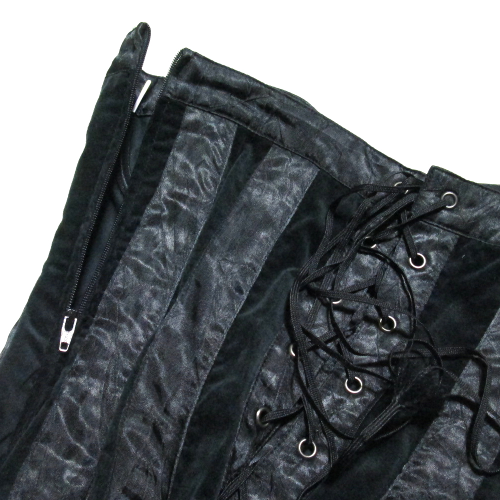 | Comment | 闇が形を持った瞬間。alice auaa が描く、悪魔的ゴシックの完成形とも言えるコルセットジャケットです。深く光を吸い込むブラックベルベットと、冷たい艶を放つサテン。異なる質感を切り替えることで、静と動、柔と硬が同時に立ち上がる構造美を生み出しています。身体の線を支配するように設計されたコルセットディテールが、着る者を守る鎧のようでありながら、同時に拘束具のような緊張感も孕む一着。ゴシックという様式を、装飾ではなく“思想”として成立させた佇まいです。 【スタッフの一言】 これはジャケットというより、契約書。一度袖を通したら、もう普通の服には戻れません。 【買い取りご案内】 アリスアウアアをはじめ、ゴシック・アヴァンギャルド文脈のデザイナーズアイテムの買い取りを行っております。素材使いや構造、世界観を重視し、丁寧に拝見いたします。ご相談のみでも、お気軽にお声がけください。 |