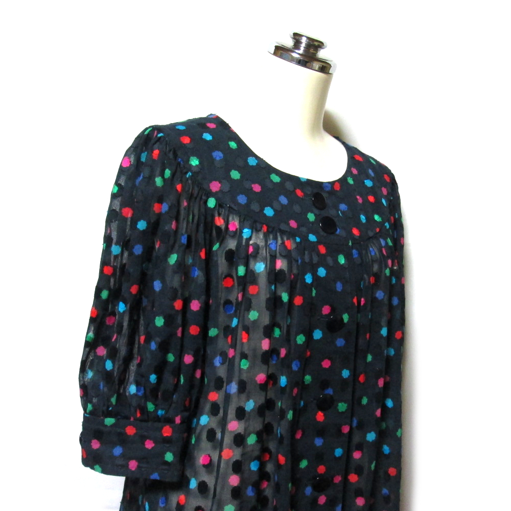 | Comment | Givenchy のヴィンテージらしい遊び心と品格が共存する、シアー素材の半袖ブラウスジャケットです。ネイビーベースにカラフルなドット柄を配し、透け感のある軽やかな素材が、装いに奥行きをプラス。パフスリーブの立体感が、フェミニンさとモード感を両立させています。ブラウスとしても、軽い羽織としても使えるデザインで、レイヤード次第で季節を問わず活躍。ヴィンテージ・ジバンシィならではの、アート性と実用性を兼ね備えた一着です。 【スタッフの一言】 透け感×ドット×パフ。可愛さとモードのバランスが、さすがジバンシィです。 【買い取りご案内】ジバンシィ(Givenchy)をはじめとしたヴィンテージのデザイナーズブランドお買取りしております。デザイン性の高いお品は特に歓迎です。 |