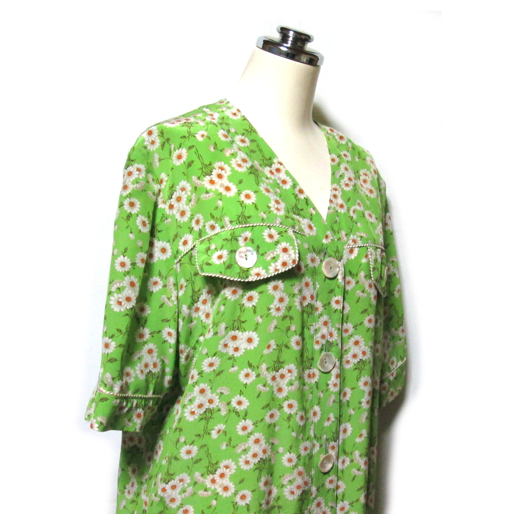 | Comment | MIMO PLATINO による、イタリア製ヴィンテージのシルクワンピースです。上質なシルク素材ならではの、なめらかな肌触りと自然な艶感が魅力。軽やかで落ち感が美しく、ヴィンテージでありながら素材の劣化を感じさせない一着です。柄は、可憐なマーガレットモチーフ。淡くやさしいグリーンカラーでまとめられています。首元はすっきりとしたマオカラー、半袖仕様で一枚でも完成度の高いデザイン。縫製やパターン、ディテールに至るまで、当時のイタリア製ならではの丁寧なものづくりが感じられます。 〈ヴィンテージ・イタリア製シルクの魅力〉 イタリア製のヴィンテージシルクは、素材選びの良さ流行に左右されにくいデザイン時を経ても美しさが残る仕立てが特徴。このワンピースも、古い”ではなく“成熟した美しさ”を感じさせる一着です。 【スタッフの一言】 やさしい柄なのに、品格がある。ヴィンテージならではの空気感が素敵です。 |