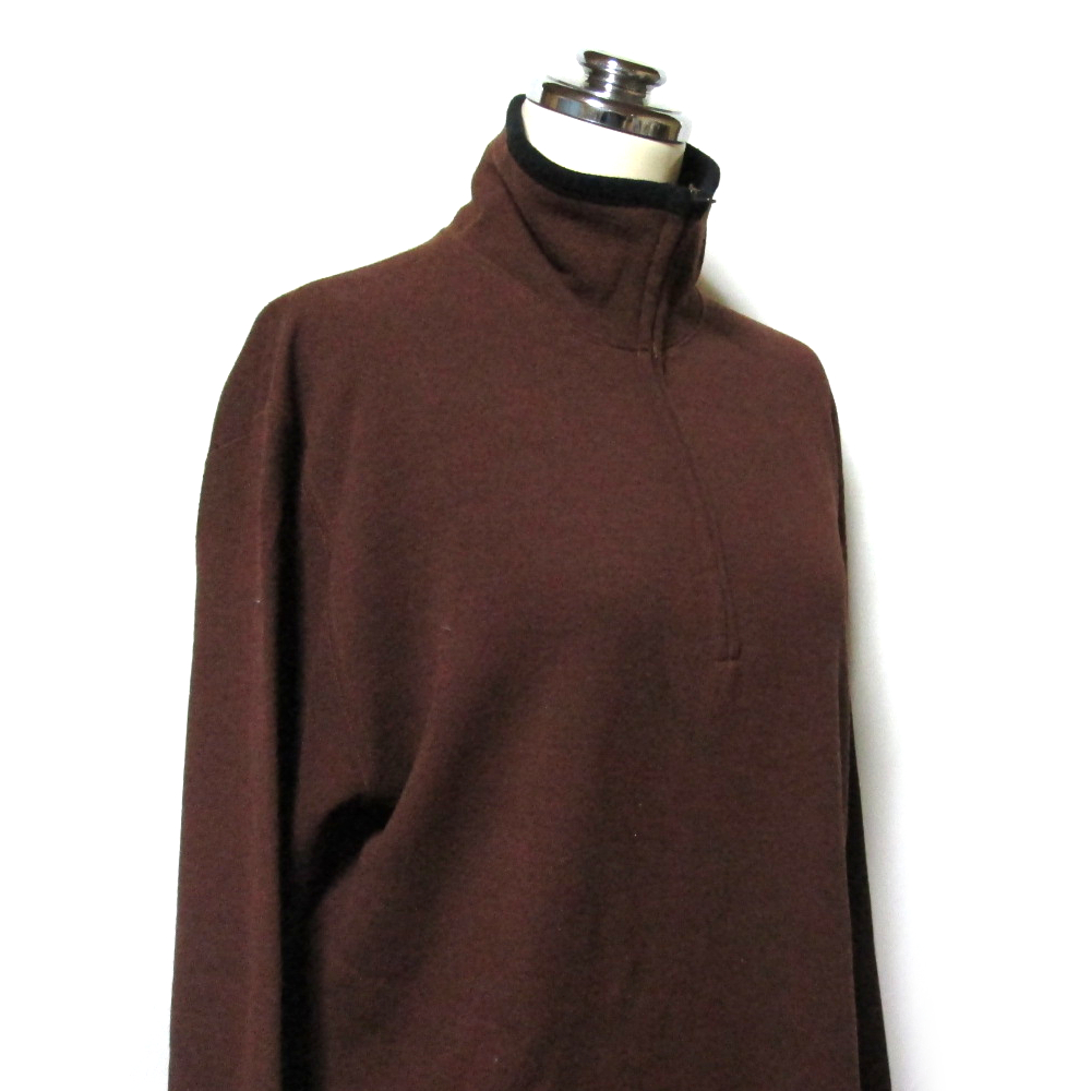| Comment | NICOLE(ニコル)のヴィンテージハーフジップトレーナーです。温かみのあるブラウンカラーのウール素材に、首元はブラックの切り替えデザイン。落ち着いた配色ながら存在感のある一着です。フロントはハーフジップ仕様で、開け閉めによって表情が変わり、インナーとのレイヤードも楽しめるデザイン。ゆったりとしたシルエットで、デニムやスラックスなど様々なスタイリングに合わせやすいアイテムです。NICOLEは、松田光弘が1970年代に立ち上げたブランド。1980年代にはDCブランドの中心として、日本のファッションシーンに大きな影響を与えました。このアイテムにも、当時のDCブランド特有のシンプルで知的なカジュアル感が感じられます。日本製ヴィンテージならではの丁寧な作りも魅力の一着です。 【スタッフの一言】 ブラウンとブラックの配色がとて良い雰囲気の一枚。DCブランドらしい落ち着いたカジュアル感のあるヴィンテージです。 【買い取りご案内】 ヴィンテージ、DCブランド、デザイナーズ古着など幅広く査定しております。ご不要なお洋服がございましたらお気軽にご相談ください。 |