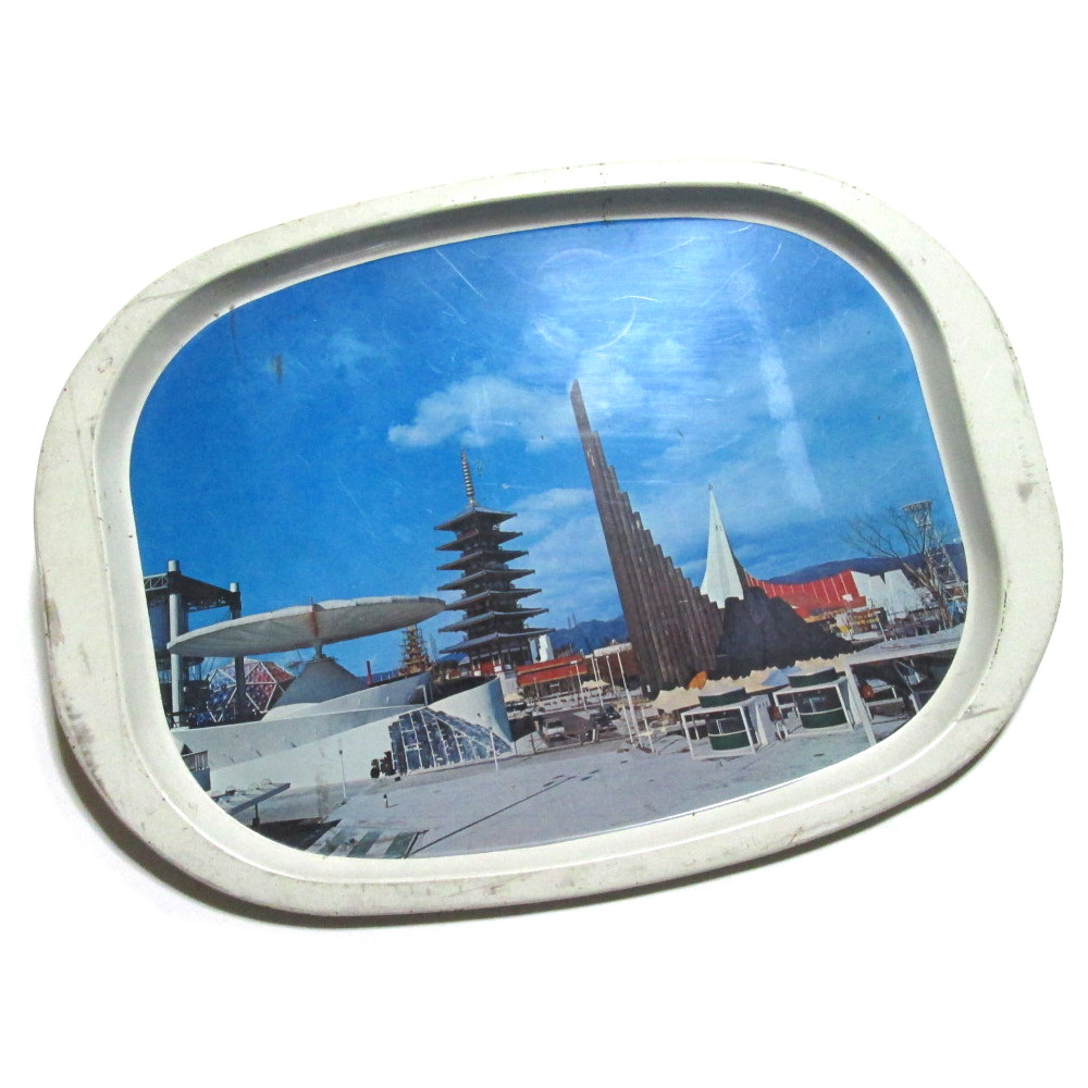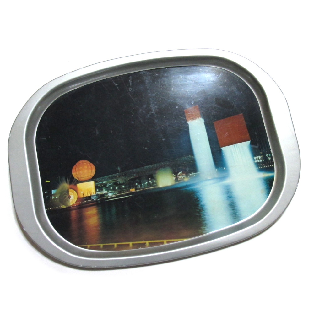 Vintage EXPO’70 ヴィンテージ 大阪万博 パビリオン写真入り メタルプレート/お盆 (昭和レトロ インテリア・当時物) 139258
