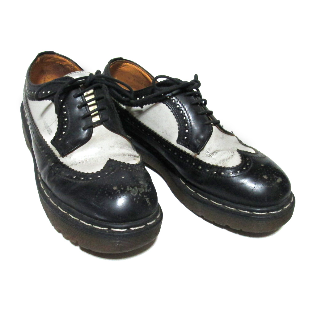 Vintage Dr Martens ヴィンテージ ドクターマーチン 「UK6」 イギリス製 白×黒 ウイングチップ レザー 厚底 5ホールブーツ (靴 皮 革 英国製 伝統) 139262