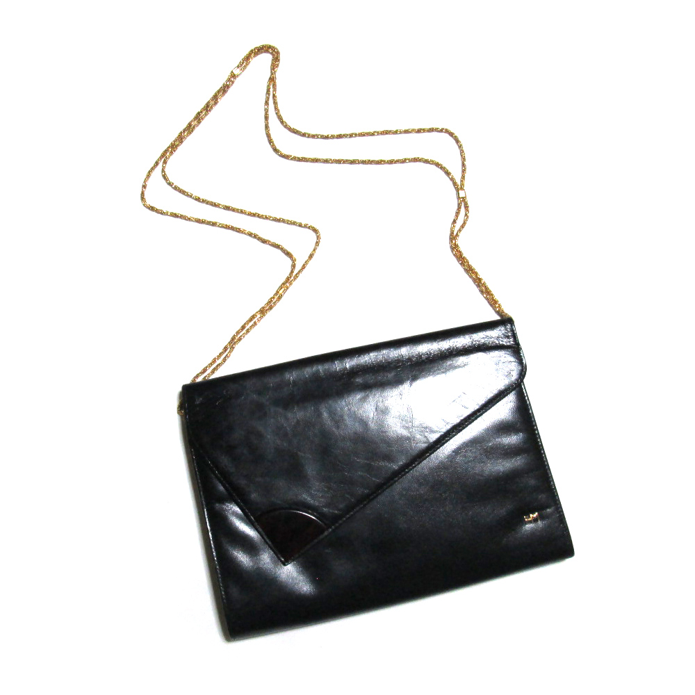 Vintage HANAE MORI ヴィンテージ ハナエモリ 日本製 ブラックレザー ゴールドチェーン ショルダーバッグ (黒 皮 革 鞄 Made in Japan) 139271