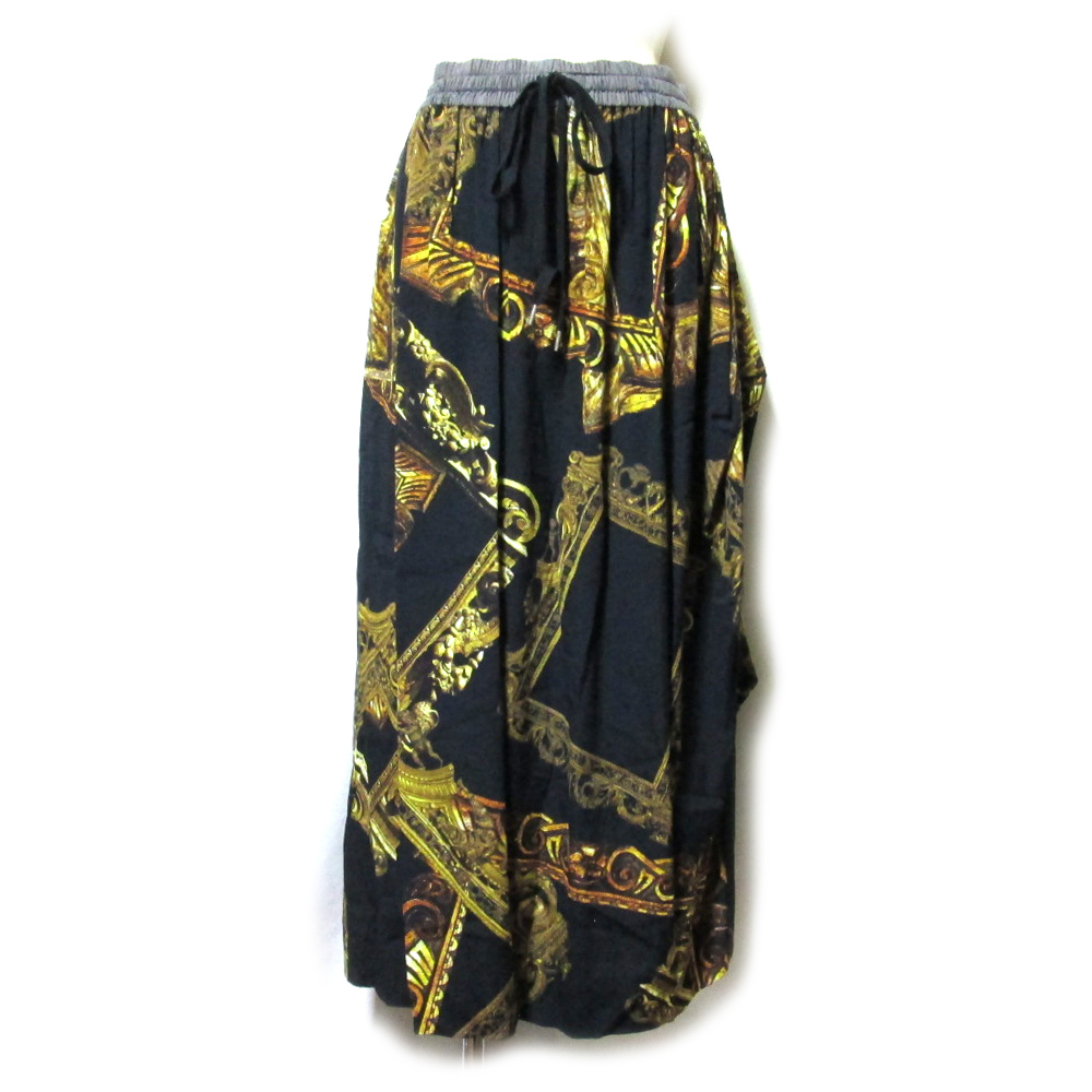 新品同様 Vivienne Westwood ヴィヴィアン ウエストウッド 「00」 額縁 アシンメトリー ワイドスカート (黒 ブラック ウエストゴム ロング マキシ丈) 139205