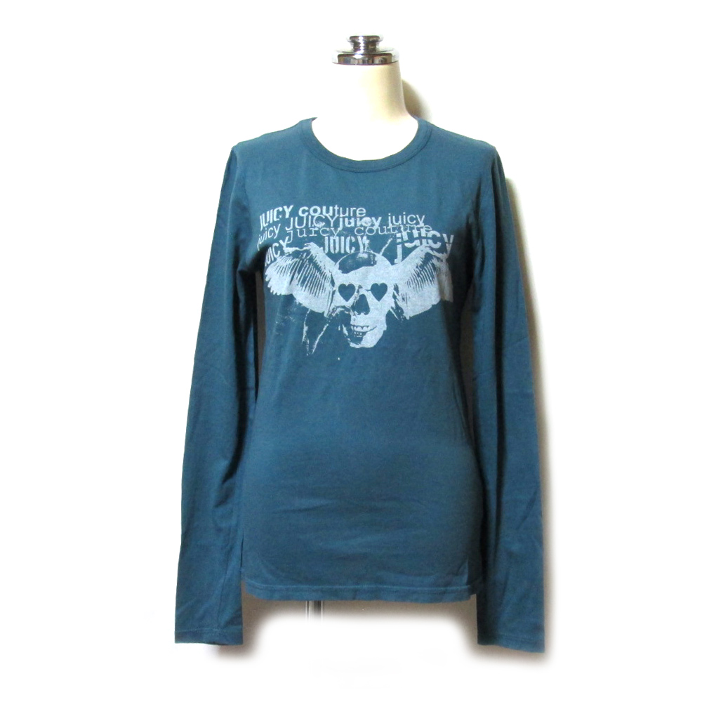 美品 Vintage Juicy Couture ヴィンテージ ジューシークチュール 「M」 スカルウィング ロングTシャツ (長袖 ブルーグレー ストレッチ Y2K) 139222