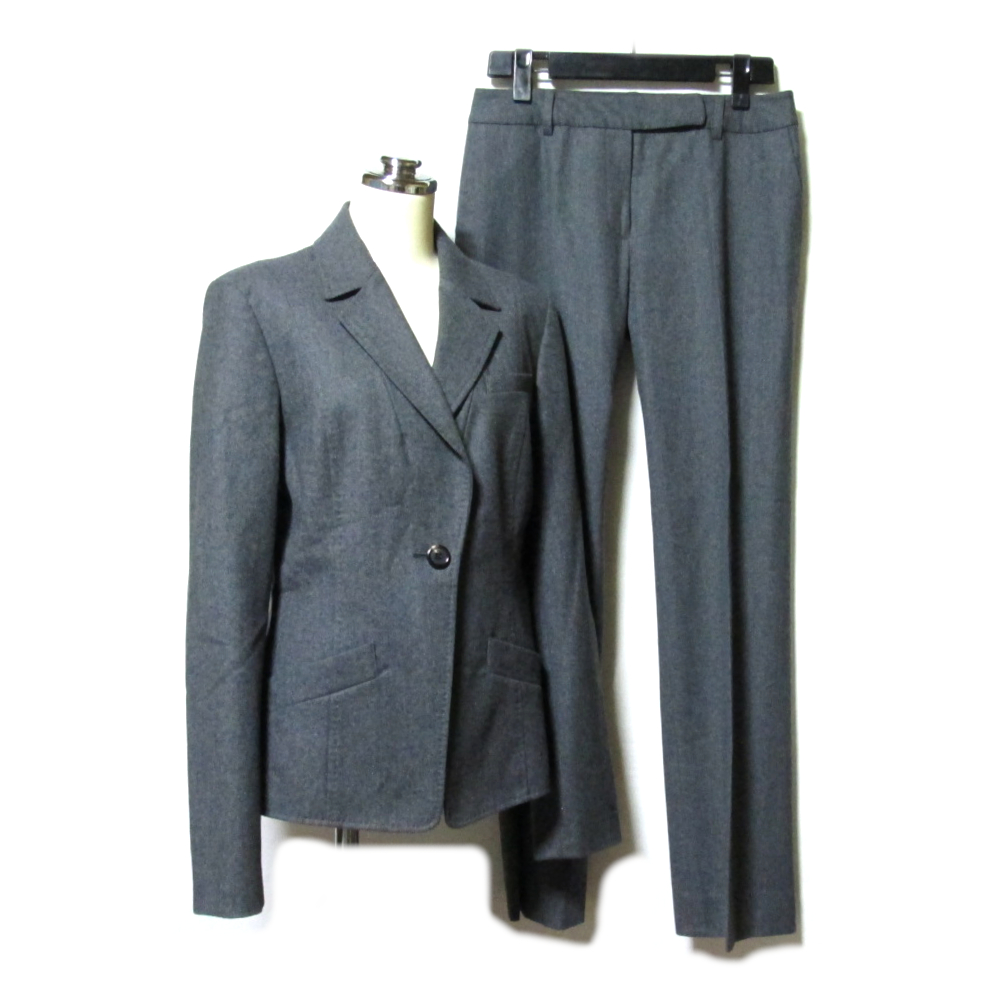 美品 TRUSSARDI トラサルディ 「40」 IB ウールパンツセットアップスーツ (グレー 定番 ビジネス ) 139307