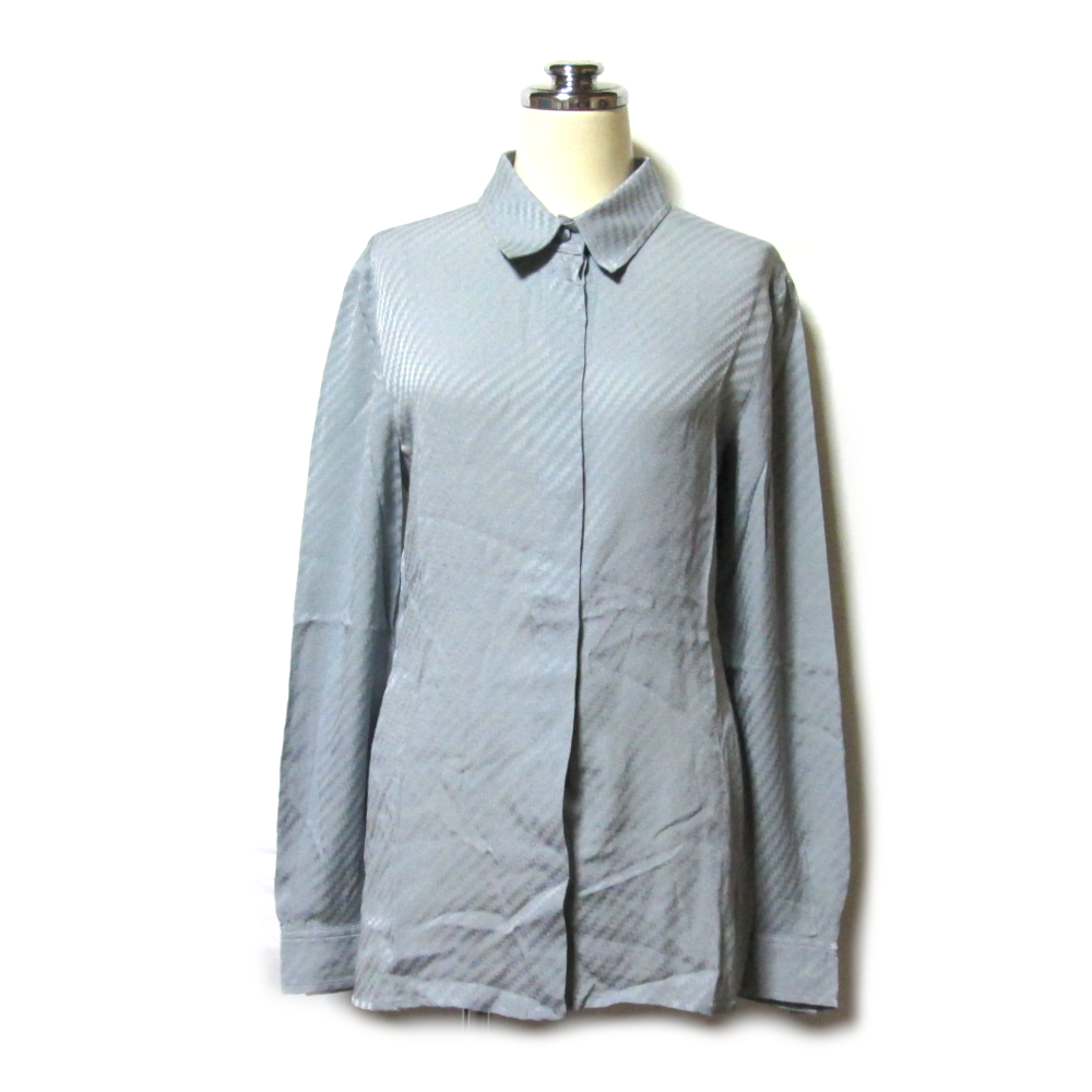 美品 ARMANI COLLEZIONI アルマーニ コレッツォーニ 「38」 シルク.シャツ.ブラウス (グレー 織柄 比翼仕立て 絹) 139308