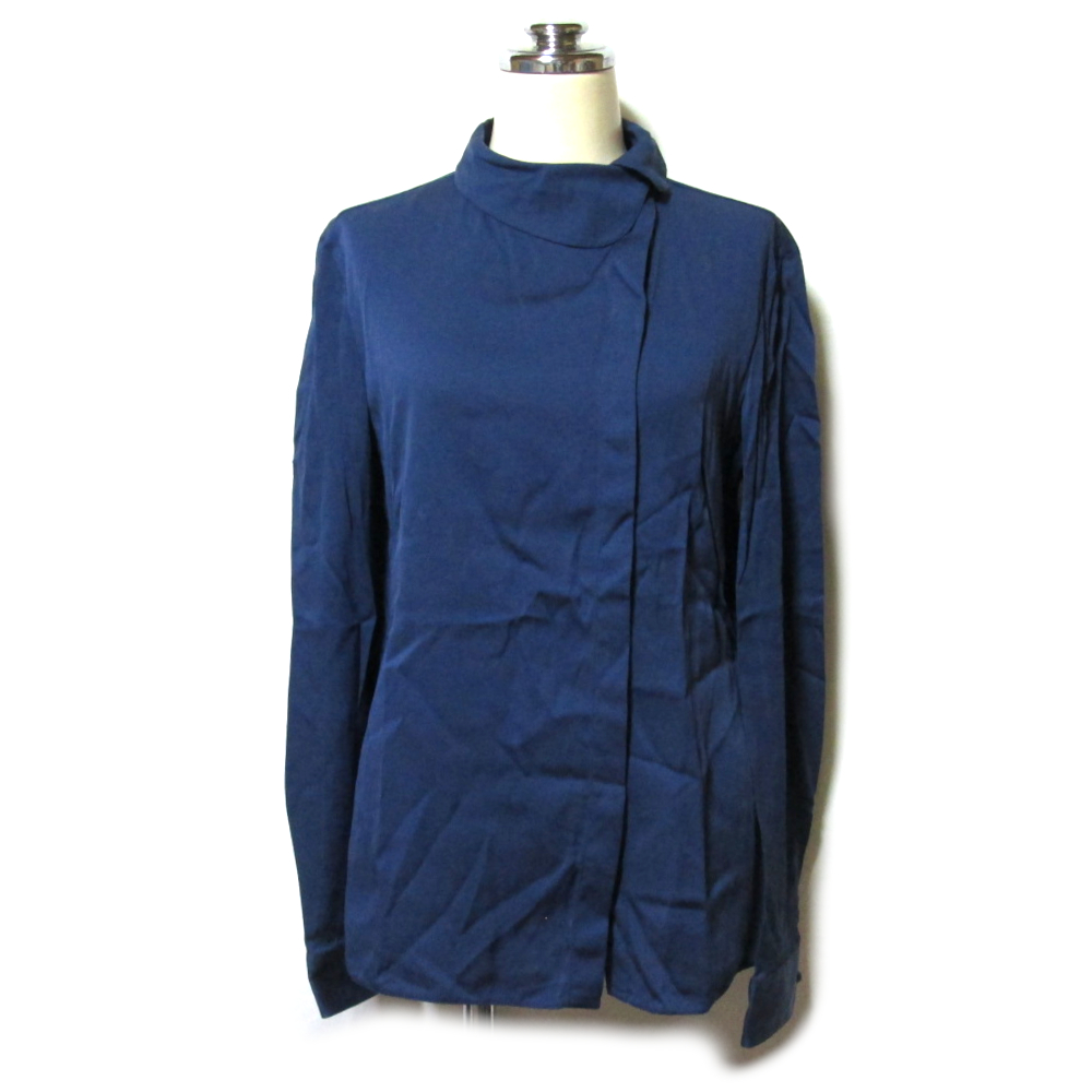 ARMANI COLLEZIONI アルマーニ コレッツォーニ 「38」 アシンメトリーカラーデザインシルクブラウス (紺 ネイビー 比翼仕立て 絹) 139309