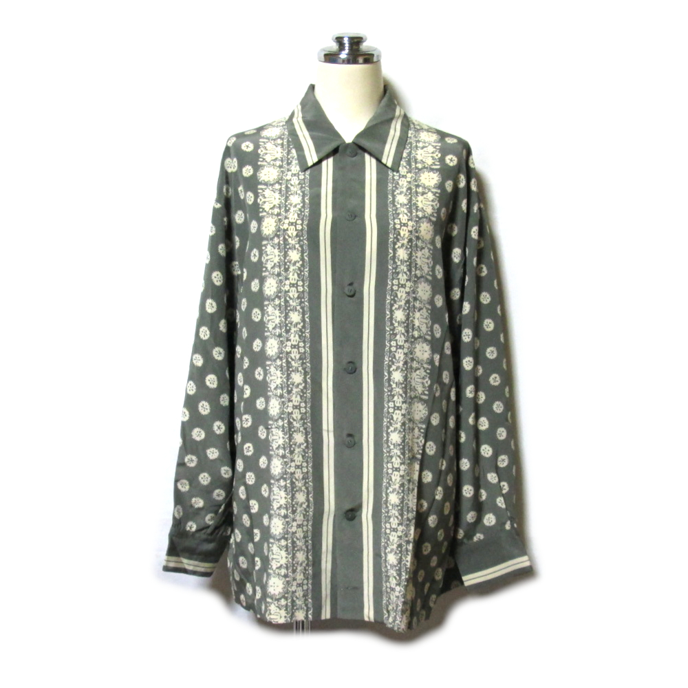 Vintage madam NICOLE ヴィンテージ マダムニコル 日本製 フラワーレトロブラウス (シャツ.グレー/Made inJapan) 139486