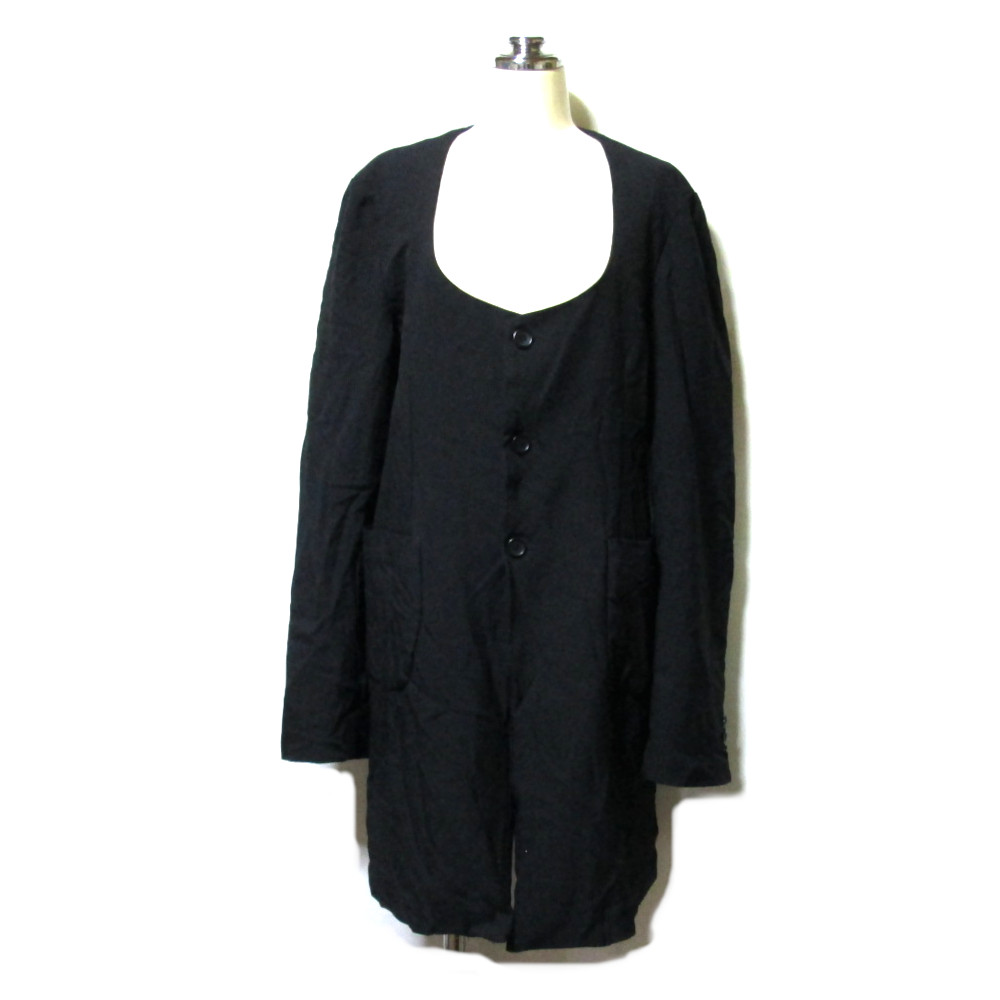 BLACK COMME des GAR_ONS ブラック コムデギャルソン 「S」 日本製 2015 ポリ縮絨 丸襟 Aライン ドレープコート ロングジャケット (ポリエステル縮絨 ワイド ビッグシルエット) 139277