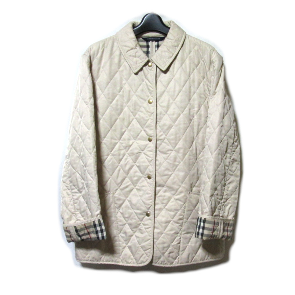 Burberry バーバリーズ 「M」 イギリス製 キルティングダウンジャケット (ベージュ×裏地タータンチェック) 139285