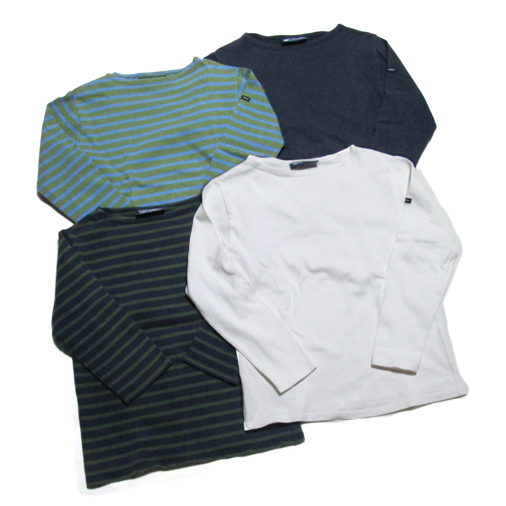 SAINT JAMES セントジェームス 「XXS」 定番コットン長袖バスクシャツTシャツ 4枚セット (ボーダー×2/無地×2 ボートネック) 139287