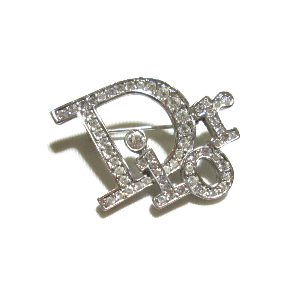 Vintage Christian Dior ヴィンテージ クリスチャン ディオール ロゴラインストーンシルバーブローチ (アンティーク アクセサリー) 139252