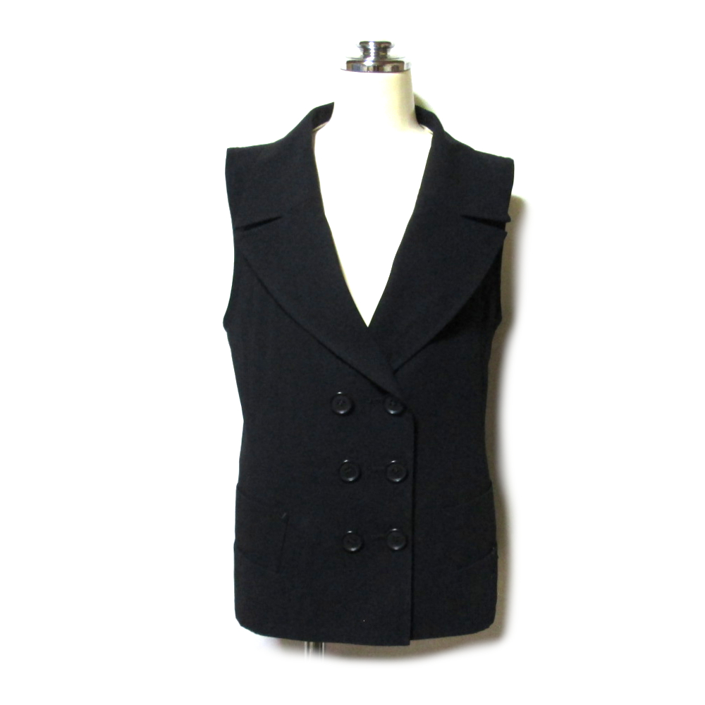LIMI feu リミフゥ 「M」 黒ギャバ ダブルブレス背中ベルトベスト.ジャケット (定番/パンク/Y's/ワイズ/ヨウジヤマモト/Yohji yamamoto/山本耀司) 139443