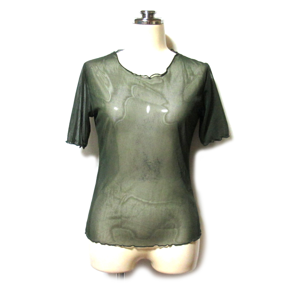 Vintage Miss Alice ヴィンテージ ミスアリス 日本製 90年代 プリントロゴシースルーシアーTシャツ (グレー 半袖 ストレッチ) 139175
